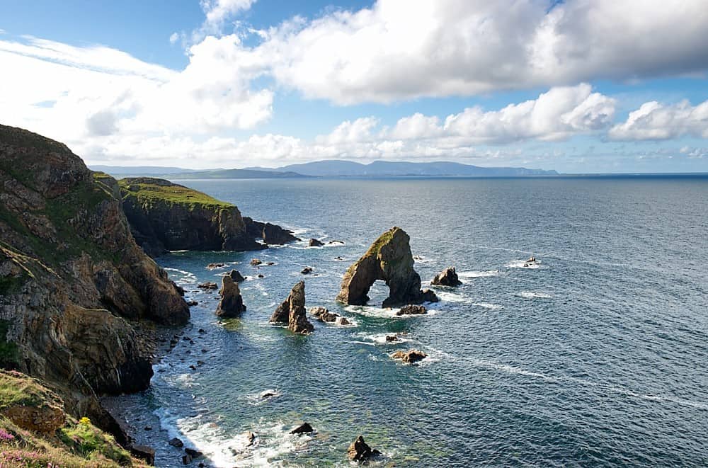 Am Crohy Head, einem einsamen Küstenstreifen auf der Mullaghmullan Halbinsel, gibt es einige bemerkenswerte Felsformationen wie zum Beispiel das Brandungstor „The Breeches“.
