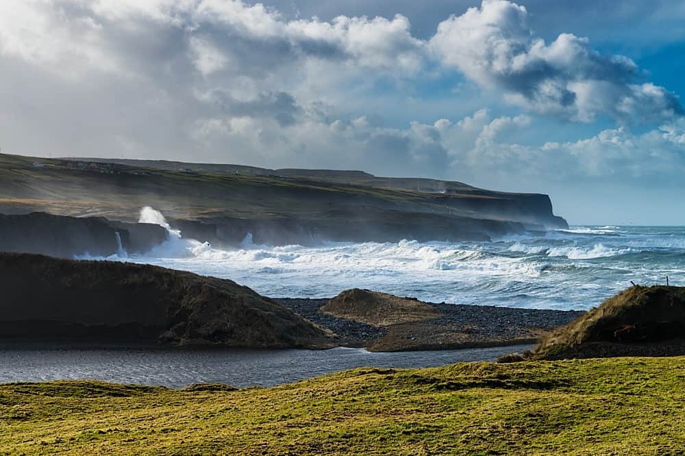 Auf dem Weg zum Doolin Pier (Ausgangspunkt von Bootsfahrten zu den Aran Islands) passiert man das urige Dörfchen Doolin, das mit seinem Charme, netten Cafés, Pubs und traditioneller Musik Touristen magisch anzieht. Gerade in den Sommermonaten ist Doolin mehr als gut besucht. Auch landschaftlich hat die Gegend einiges zu bieten. An manchen Stellen ragen die Kalksteinplatten des Burren bis zum Wasser und in südlicher Richtung türmen sich die Cliffs of Moher auf.
