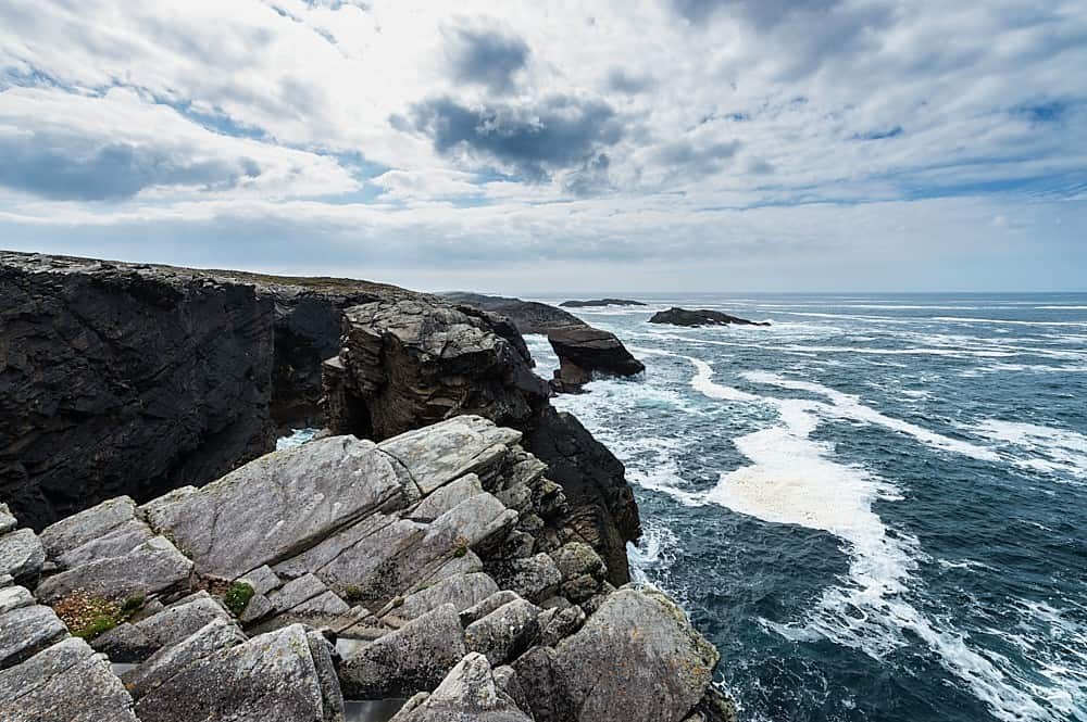Am Doonamo Point präsentiert sich die Mullet Halbinsel von ihrer rauen Seite. Eine schroffe Klippenlandschaft bestimmt die Szenerie. Direkt über den Klippen wurde eine festungsähnliche Skulptur rund um ein gigantisches Blasloch errichtet. Diese Skulptur ist Teil des North Mayo Skulptur Trail.