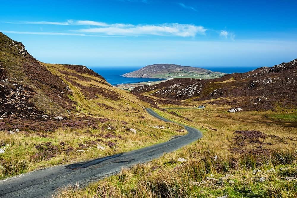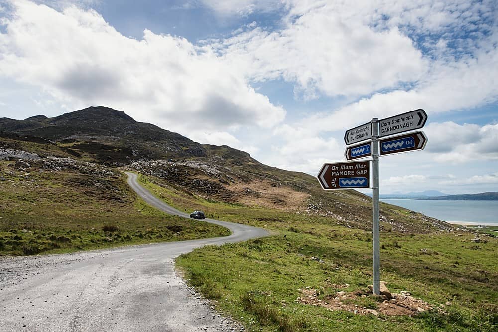 Das Gap of Mamore ist eine Passhöhe in den Urris Hills. Lange Zeit war diese schmale Straße die einzige Verbindung zwischen Urris und Buncrana. Knapp unterhalb der Passhöhe befindet sich eine kleine Parkbucht gegenüber eines Marienschreins und einer heiligen Quelle. Ein wahrhaft außergewöhnliches Panorama gibt es hier oben zu bestaunen.