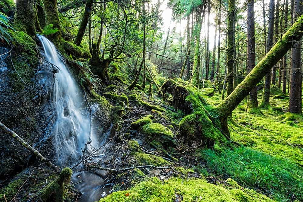 Der Lauragh Forest liegt in der Nähe von Lauragh auf der Beara Halbinsel, etwa 26 km südwestlich von Kenmare. Am besten besuchst du den Wald vom Parkplatz des Cashelkeelty Stone Circle aus.