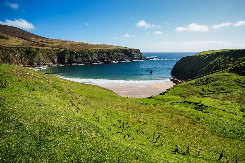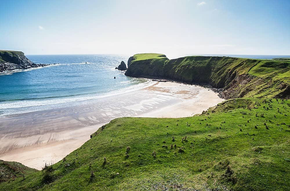 Einer der schönsten Strände des Wild Atlantic Way befindet sich nahe Malin Beg. Der sogenannte Silver Strand liegt geschützt in einer hufeisenförmigen Bucht.
