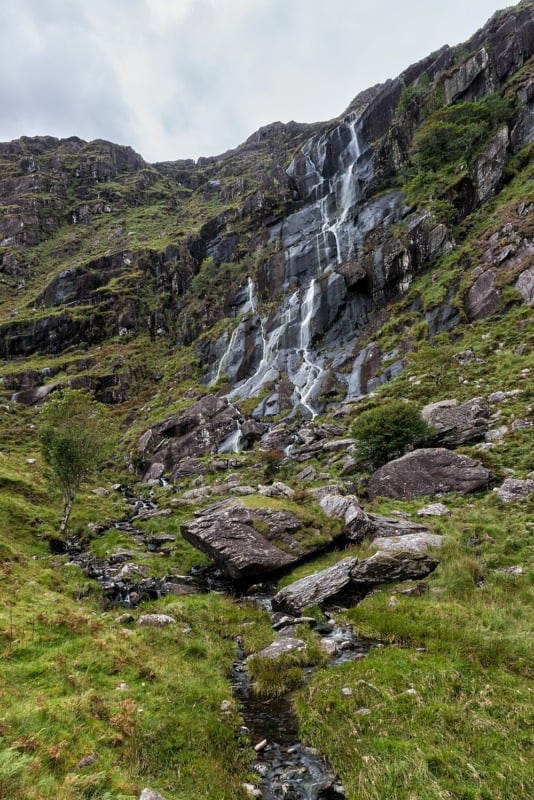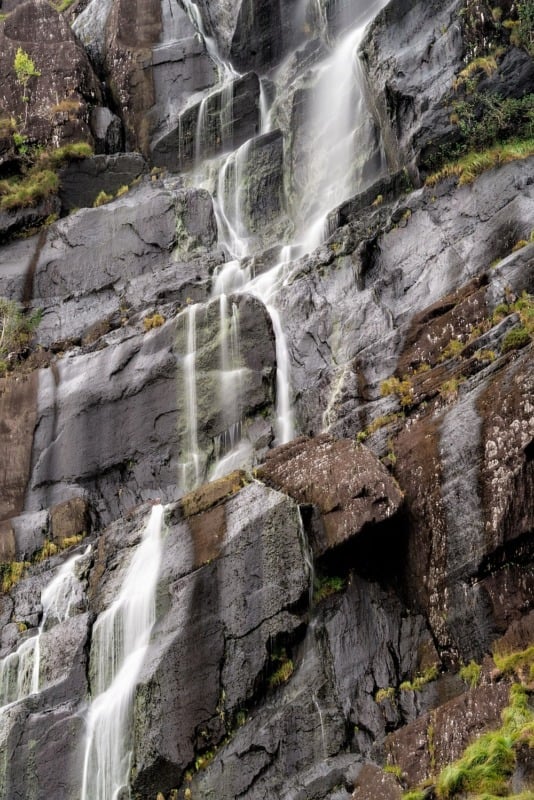 Bitte beachte: Es gibt keinen öffentlichen Zugang zum Wasserfall und es ist nicht gestattet, private Grundstücke zu überqueren. Man kann den Wasserfall von der R572 in der Nähe von Adrigole aus sehen.