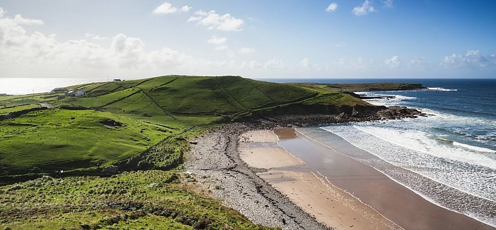 Das Muckross Head ist eine schmale Halbinsel, die sich malerisch an die Hänge eines kleinen Gebirges schmiegt. Vom Wild Atlantic Way aus hat man einen schönen Blick über die Landspitze und den beliebten Sandstrand. Im Südwesten der Halbinsel, am eigentlichen Muckross Head, erfreuen sich Kletterer an senkrechten Felswänden.